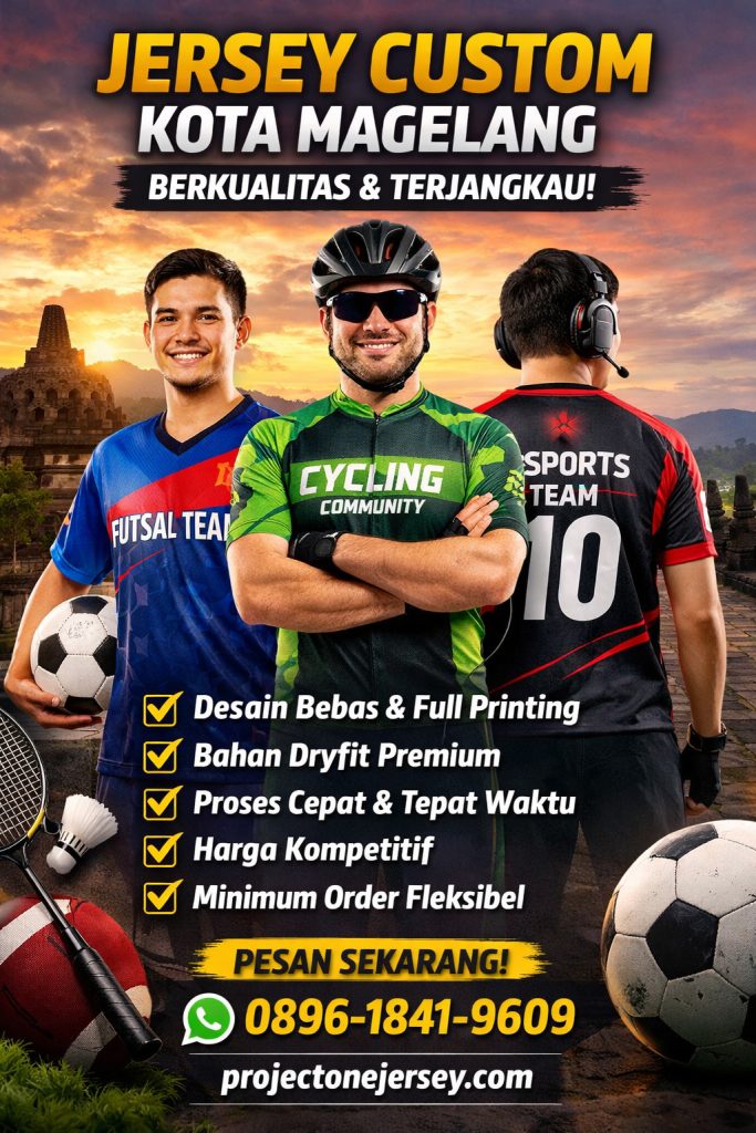 Mencari jasa jersey custom Kota Magelang yang berkualitas memang tidak boleh sembarangan. Anda membutuhkan vendor yang profesional, berpengalaman, dan menggunakan bahan terbaik agar jersey nyaman digunakan dan tahan lama.