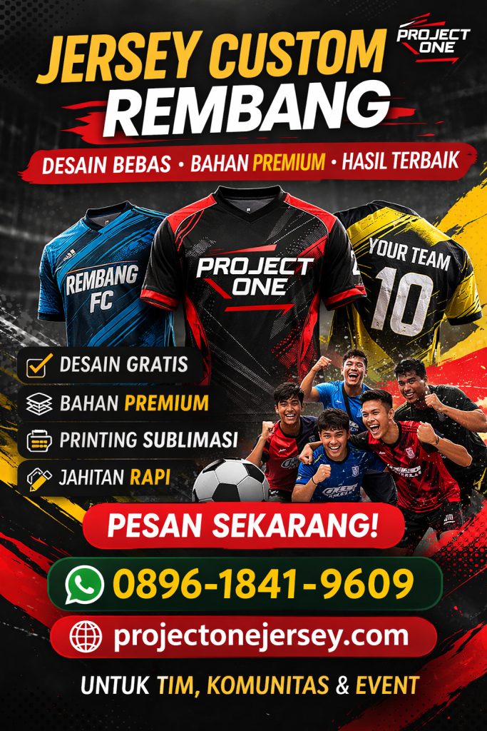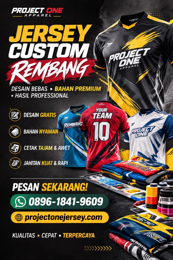 Jika Anda sedang mencari tempat bikin jersey custom Rembang yang berkualitas, maka Project One Apparel adalah pilihan yang tepat. Vendor ini dikenal sebagai penyedia jersey custom dengan kualitas bahan terbaik, desain bebas sesuai keinginan, serta proses produksi profesional.
