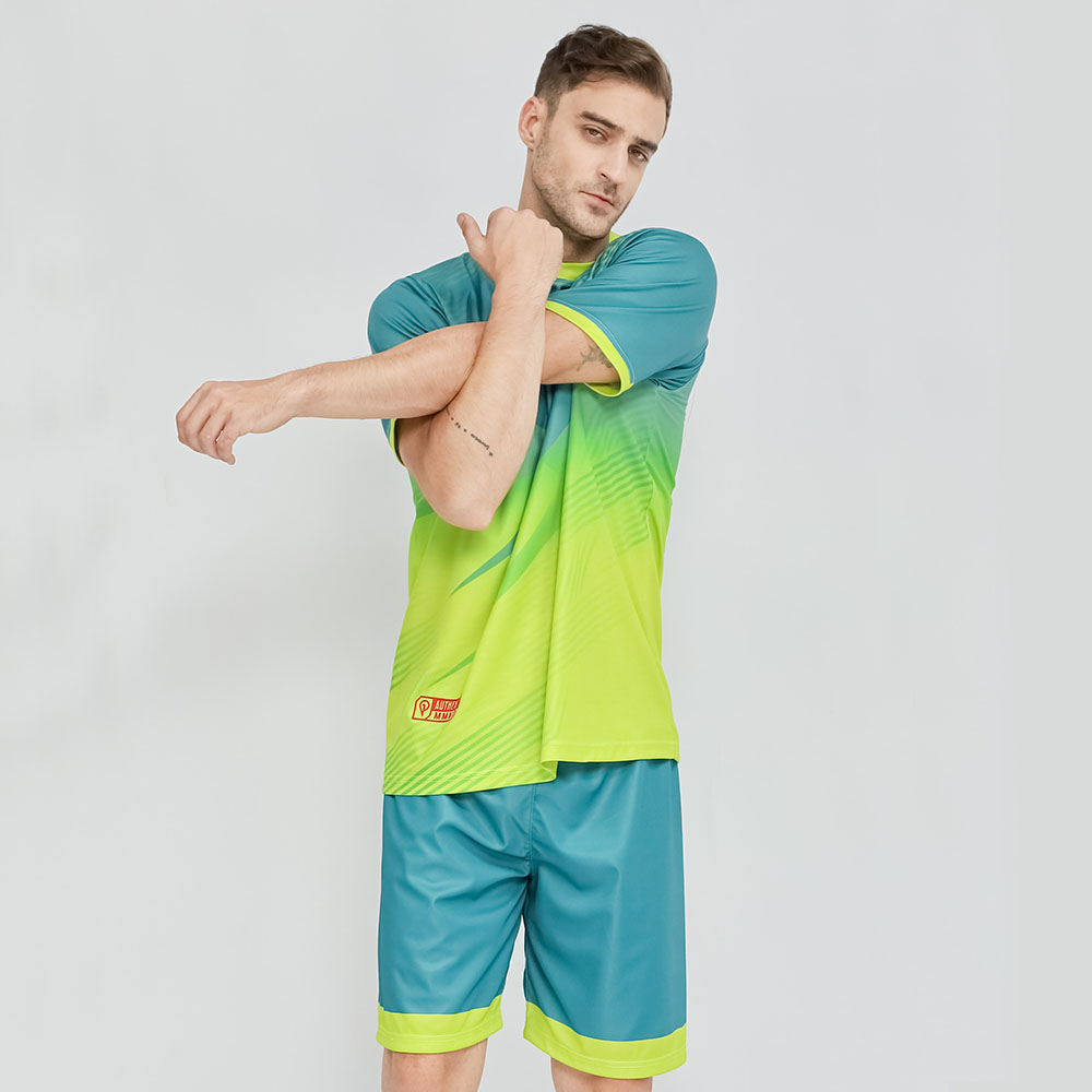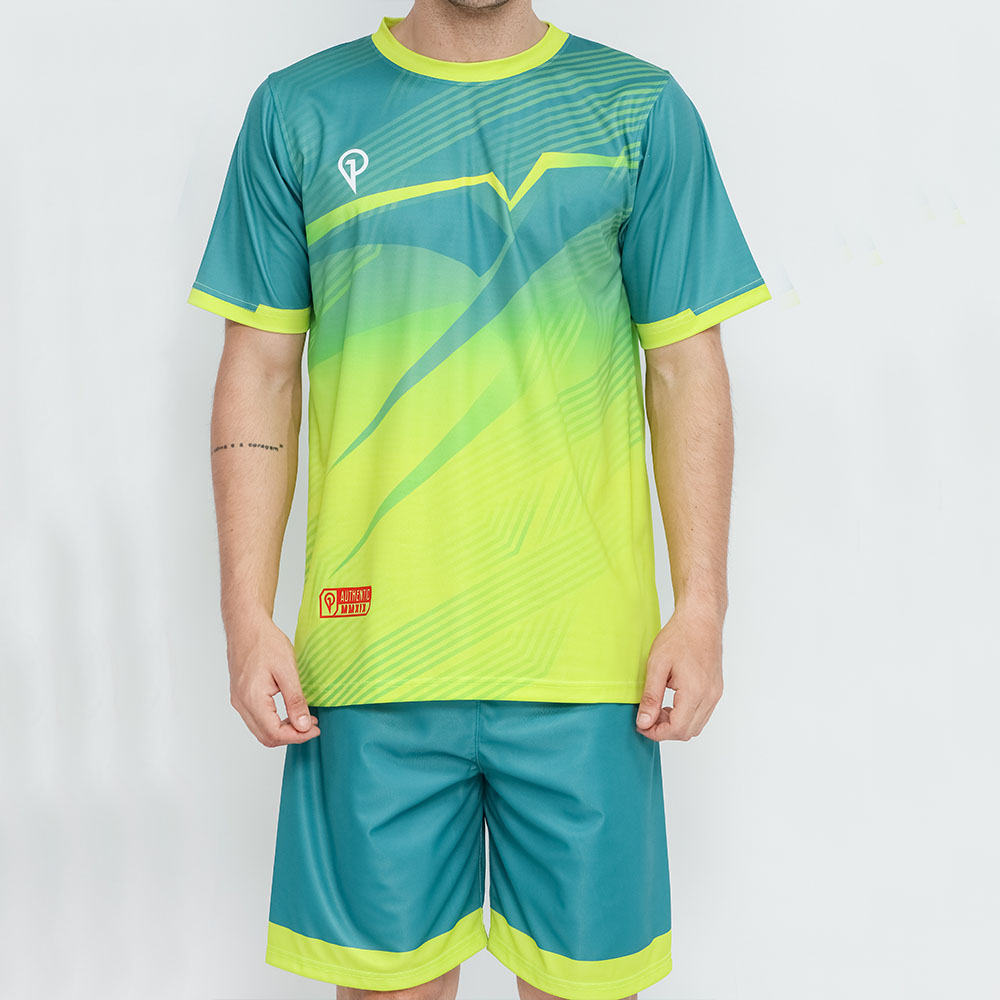 Setelan jersey adalah pakaian olahraga yang terdiri dari dua bagian, yaitu atasan dan celana yang terbuat dari bahan jersey. Setelan jersey biasanya digunakan oleh atlet dan olahragawan untuk berbagai jenis olahraga seperti sepak bola, basket, atau voli. Atasan pada setelan jersey biasanya berupa kaos atau kaus olahraga dengan lengan pendek atau lengan panjang, dan terbuat dari bahan jersey yang ringan dan mudah menyerap keringat. Celana pada setelan jersey biasanya berupa celana pendek atau celana panjang dengan potongan yang longgar dan elastis, sehingga dapat memberikan gerakan yang lebih leluasa saat berolahraga.